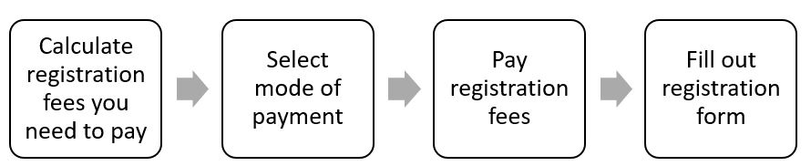 Before initiating the registration process, please make sure that you have calculated the amount with the calculator provided on this site.